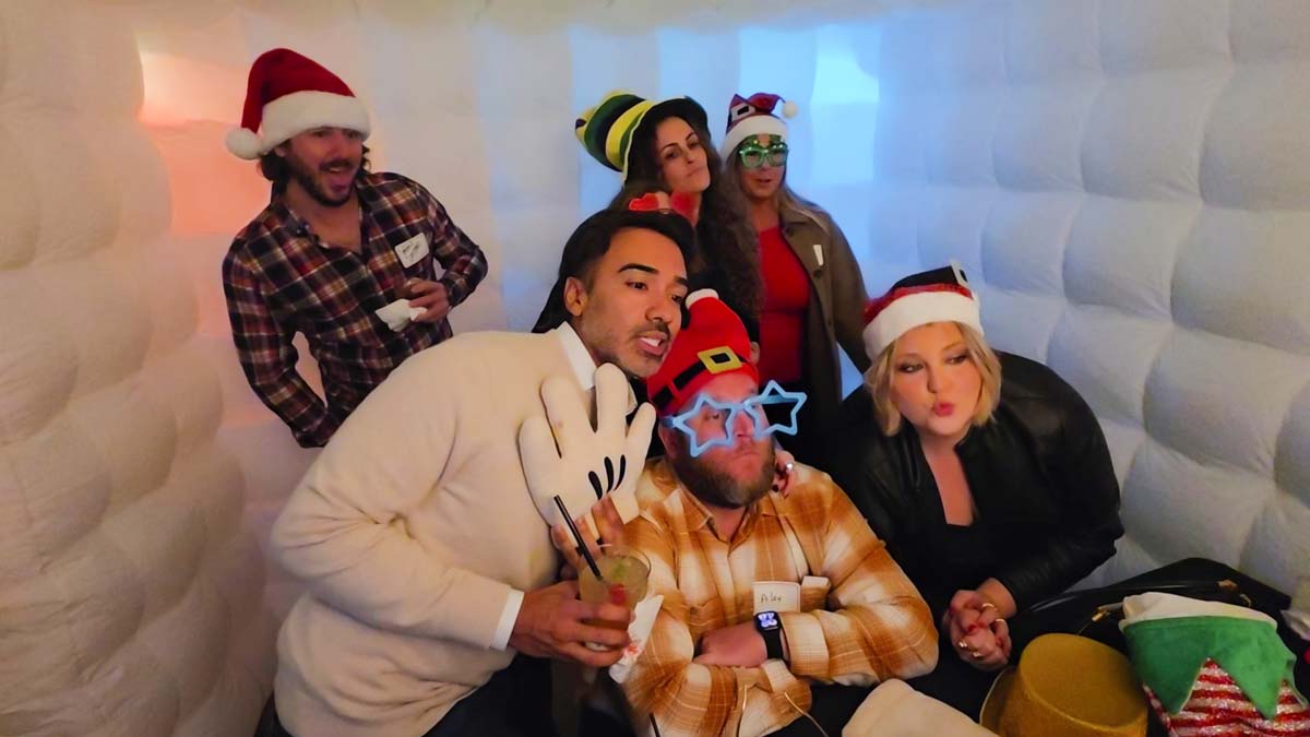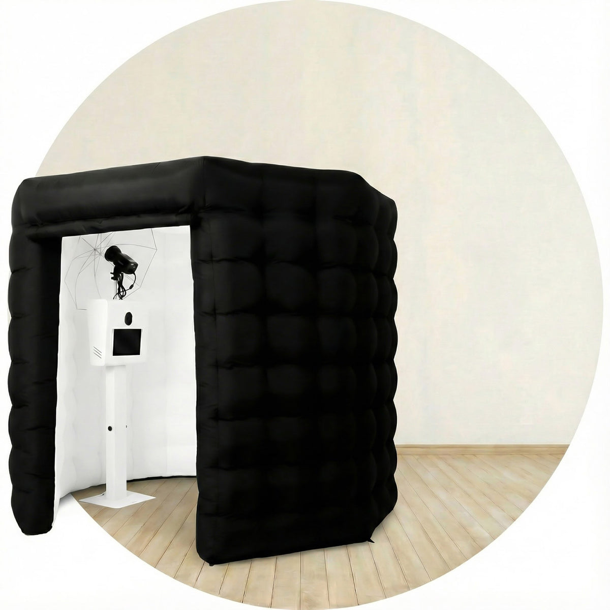 Our Black Inflatable Cube is a chic, lounge-style photo booth with a sleek black exterior and a bright white interior that glows in photos — perfect for stylish, cozy group shots. We place our Open Air Photo Booth inside this smaller cube so guests get extra privacy to relax, pose, and be themselves, which always leads to more genuine, fun photos. Inside, you’ll still enjoy our true studio-quality setup with a professional camera, flattering studio lighting (never iPads), and custom-designed photo templates that match your event vibe, plus unlimited prints, instant digital sharing, and an online gallery with all of the night’s photos ready to download.