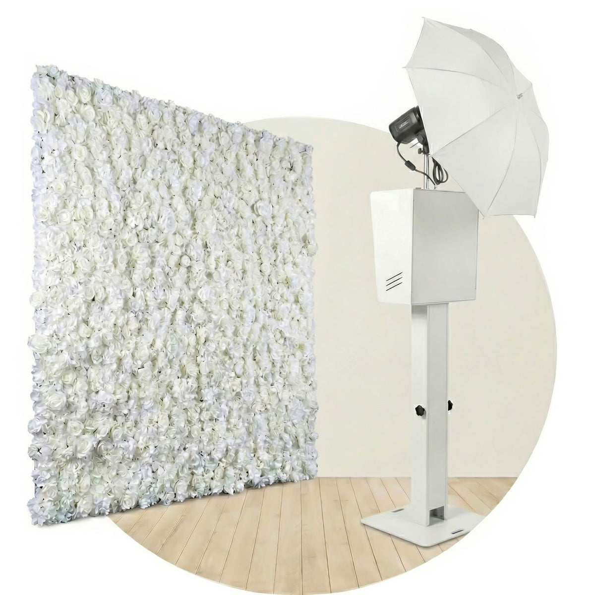Our Wedding Package is a luxe, all-in-one experience designed just for your big day—saving you over $200 compared to booking à la carte. Choose either our Open Air Photo Booth paired with any backdrop we offer, our lush White Roses Flower Wall, or our elegant Green Hedge Wall — or opt for our glowing White Inflatable Cube or chic Black Inflatable Cube for a private, lounge-like mini-studio.